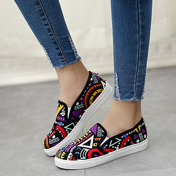 Chaussures imprimées femmes graffiti occasionnels plate-forme de chaussures de toile des mocassins plats respirant