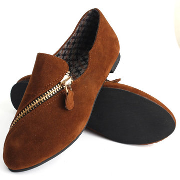 Nouvelles femmes daim peu profonde bouche glissière chaussures plates occasionnels