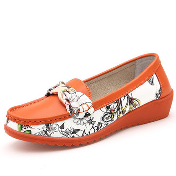 Nouvelles femmes respirant en cuir souple sur creuse appartement confortable glissement sur les chaussures