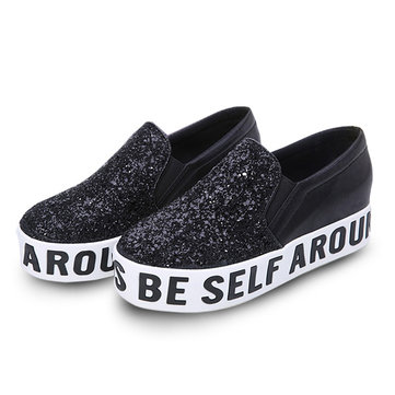 été la plate-forme casual chaussures de paillette cuir mocassins de mocassins à bout rond