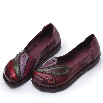 SOCOFY& Leather& Phoenix& Multi-Color& Slip& On Casual Chaussures plates