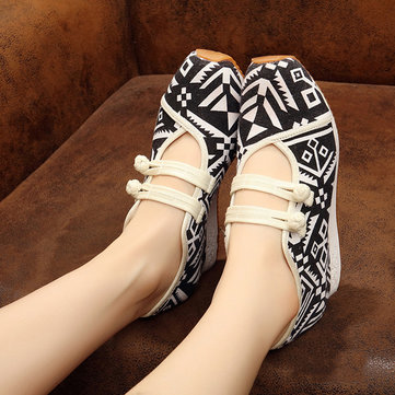 Chaussures Plates à Motifs Géométriques à Bout Rond avec Crochet Décontractées