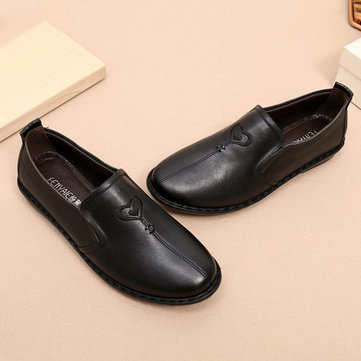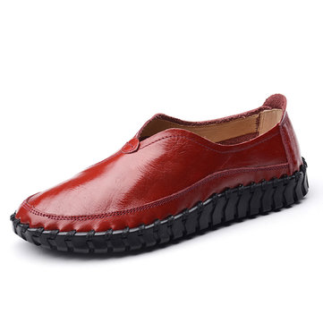 Décontracté couleur pure couture slip en cuir sur les chaussures plates pour les femmes