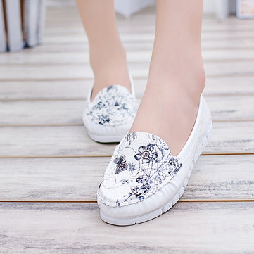 Slip floral décontracté plat sur les chaussures à bout rond pour les femmes