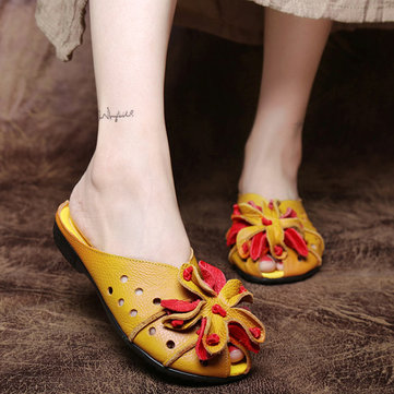 SOCOFY& Leather& Flower& Hollow& Out& Chaussures rétro sans dossier respirant