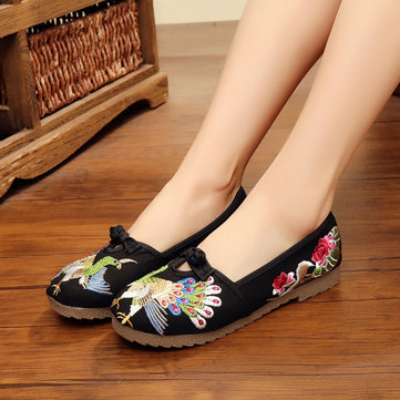 Peacock Chinoise Brodé Casual Slip On Flat Loafers