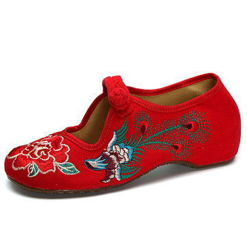 Chaussures Plates à Boucle Ornées de Broderie Chinoise de Paon Flokloriques