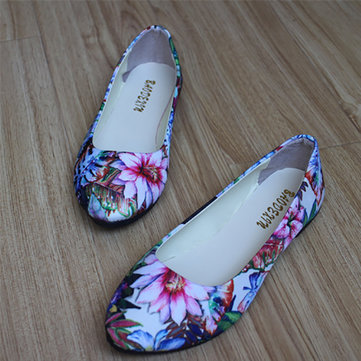 Les femmes flats chaussures slip respirant confortable fleurs floral chaussures de mocassins plat