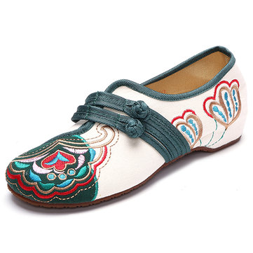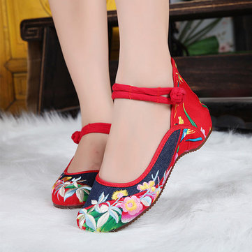 Chaussures Chinoise de Fleur Brodée Mary Janes Boucle Mocassin Plat
