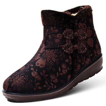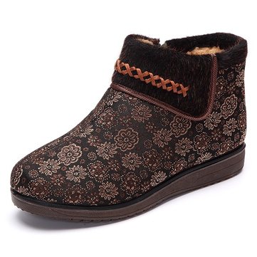Chaussures en coton femmes doublure en fourrure garder chaude fleur occasionnels bottes plates en plein air