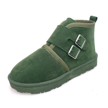 Boucle de couleur pure doublure en coton chaud bottes de neige bout rond