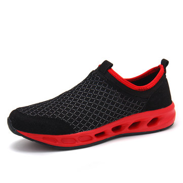 Hommes été sport de plein air plat mode respirant bout rond évider maille chaussures de sport