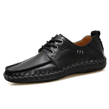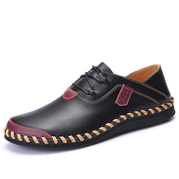 Hommes& en& cuir& véritable& à& la main coutures décontractées Oxfords chaussures