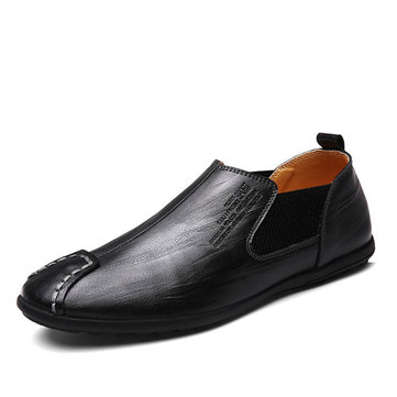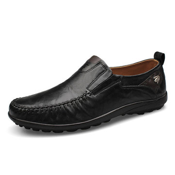 Hommes& en& cuir& véritable& Soft& Slip On Loafers Casual Shoes