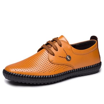 Hommes& Breathable& Hollow& Out& Casual& Leather Casual Oxfords Flats