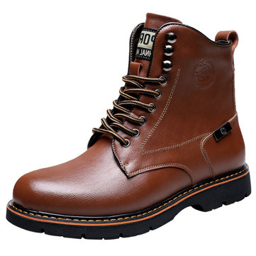 Hommes Bottes de Mode Hautes Extérieures Décontractées en Cuir Doublure de Laine