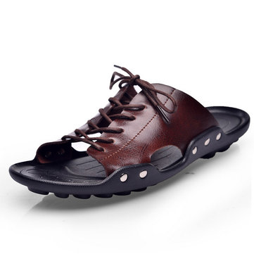 Hommes& Casual& Breathable& Beach& antidérapant& Sandales en cuir véritable