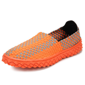 Mens étirer tricot chaussures occasionnelles lastique enfilable plate couture chaussures de sport