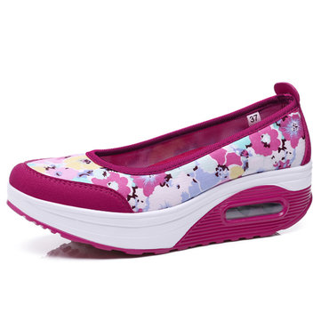 Femmes sport running rocker sole chaussures décontracté slip sur les appartements