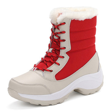 Femmes occasionnels lacent suède en peluche bottes à bout rond cheville