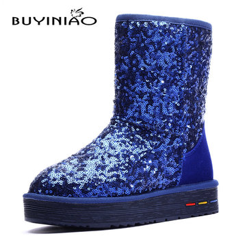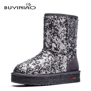 Buyiniao femmes coton d'hiver bottes de neige bottes de fond plat des bottes paillette d'hiver