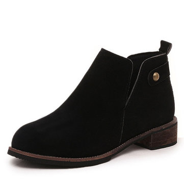 Grande taille coté fermeture à glissière carré talon bottes décontractées cheville court