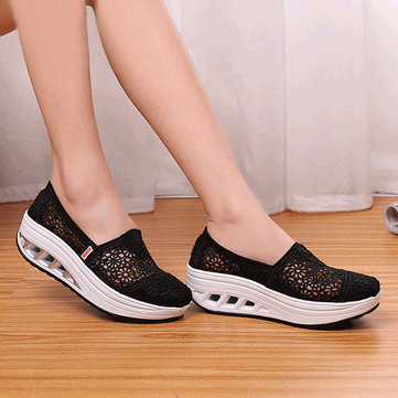 Chaussures de Dentelle Creusée Casual Slip On Chaussures avec Semelle à Bascule Bout Rond Santé