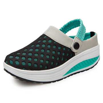 Les femmes été chic et sandales compensées crochet match de la couleur de la boucle de maille respirante sandales