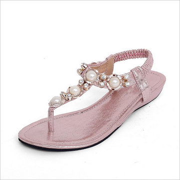 Bohême perles rétro sandales de plage cru peep toe enfiler des sandales plates