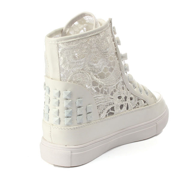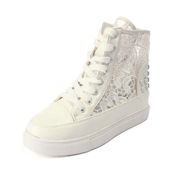 Creuse en dentelle sur les femmes causales baskets chaussures plate-forme de toile