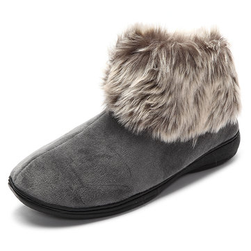 Faux doublure en fourrure de glissement sur bout rond garder des bottes de neige de la cheville au chaud