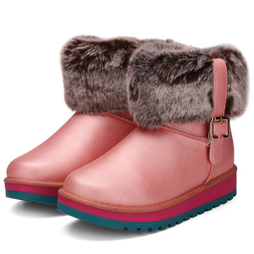 Femmes hiver automne en peluche chaud PU cuir bottes de neige