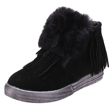 Hiver femmes chaudes pompon plat frange fourrure bottines occasionnels chaussures de neige molle