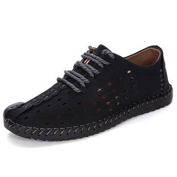 Hommes British Style Hand Stitching Hollow Out Lace Up Casual Flats