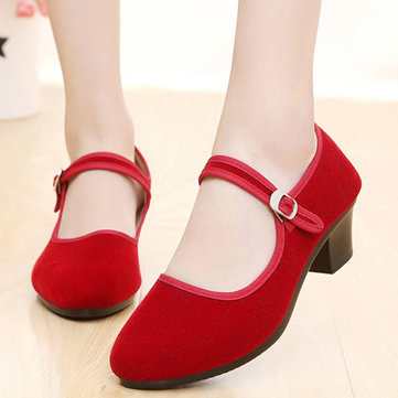 Les femmes en daim semelle souple coin sandales boucle respirante danse sandales