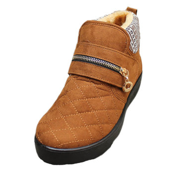 Les femmes hiver chaussures chaudes bout rond bottes plates-formes auto-agrippante bottines courtes