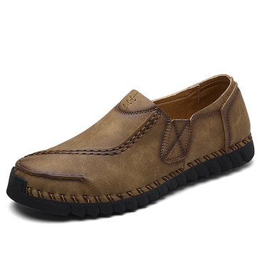 Men Casual Hand Stitching Retro Slip On Loafers Flats