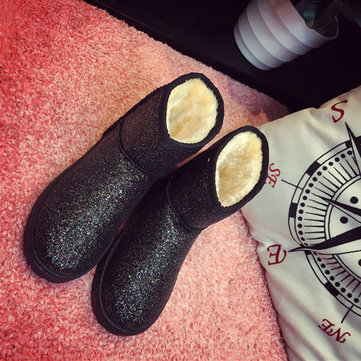 Slip casual sur doublure en coton chaud bout rond bling cheville court bottes