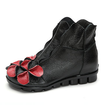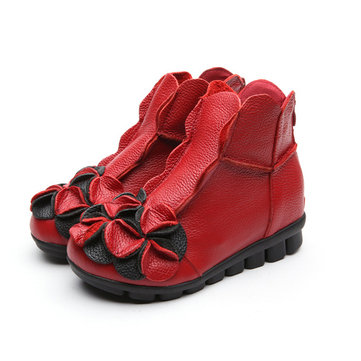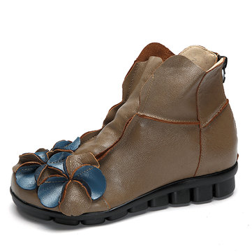 SOCOFY Boucles d'oreilles en cuir souple et douce en cuir Vintage Slip On Flat Boots