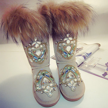 Artificiel fourrure chaud genou haute neige bottes strass chaussures pour femmes