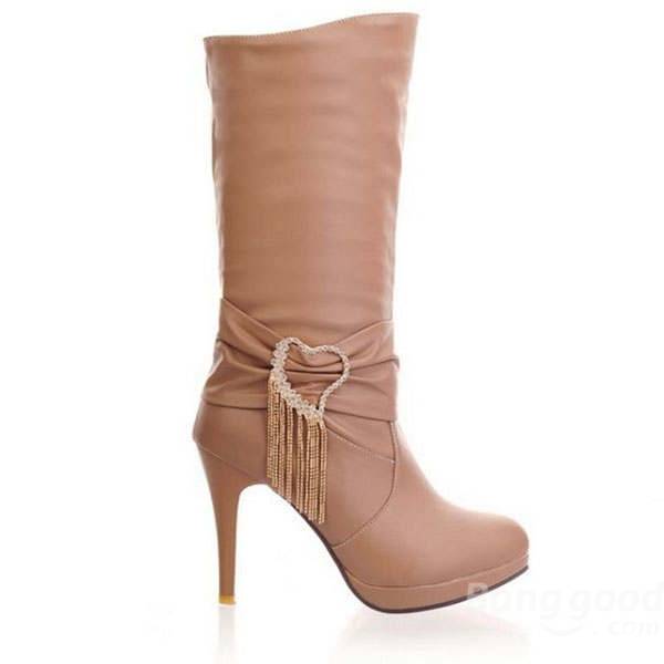 Les femmes lacent hiver plateforme haut talon au cours des bottes au genou