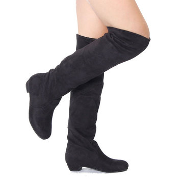 Nouvelles femmes de plus de la botte au genou flats daim de facon confortable bottes molles chaussures