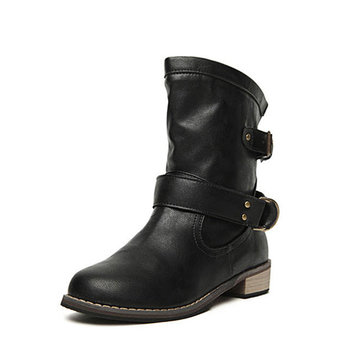 Femmes martin cuir chaussure mode de bout rond chaussures plates mi-mollet