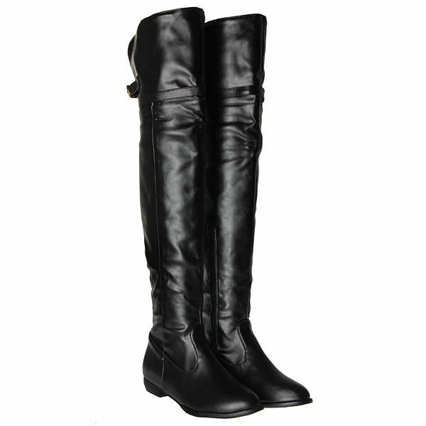 Femmes sexy boucle en cuir synthétique sur le genou bottes plates élevés