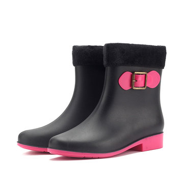 Les femmes bottes de pluie garder bottes chaudes en peluche occasionnels extérieures étanches anti-dérapant cheville