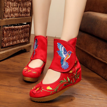 Taille nous 5-10 femmes bottes de plein air occasionnels broderie vent national bottes courtes plates florales