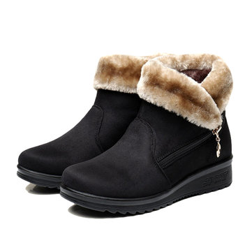 Doublure en laine artificielle fermeture à glissière bout rond cheville neige bottes courtes