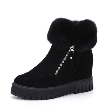 Fourrure artificielle coté doublure fermeture à glissière talon augmentant la cheville bottes courtes