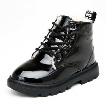 Enfants unisexe hiver en peluche chaude étanche PU cuir occasionnels bottes