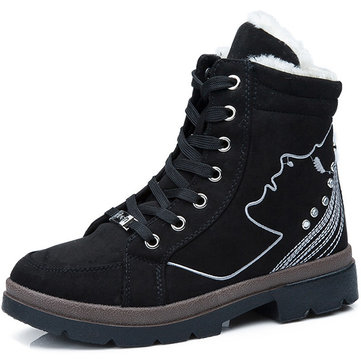 Les femmes d'hiver occasionnel garder bottes chaudes coton chaud bout rond lacent des bottes de neige